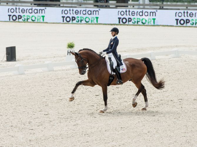 A bit of bad luck for the Dutch team helped the USA on their way to a gold medal in Rotterdam’s FEI Nations Cup™ Qualifier. Madeleine Witte-Vrees’s horse Cennin lost a shoe only minutes before their test and could not compete, which meant that the entire Dutch team was eliminated. Graves showed her commitment and skill by anchoring the USA team to victory, with Sweden and Germany finishing in second and third.