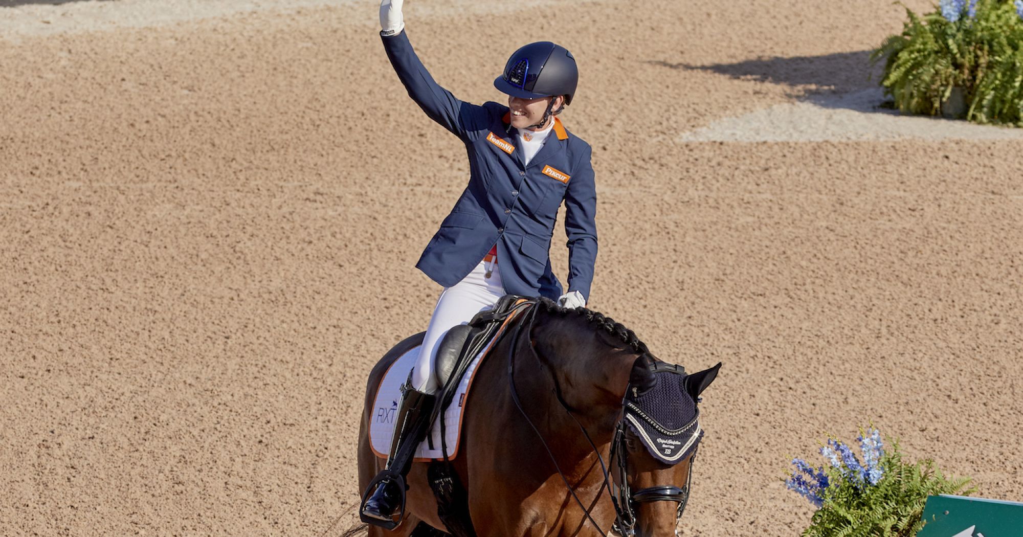 The Dutch team – Grade II’s Nicole den Dulk, Grade III’s Rixt van der Horst, Grade IV’s Sanne Voets, and Grade V’s Frank Hosmar – clinched the championship with a total score of 223.597% after van der Horst, on Findsley, scored 73.559%, the first score of the day in her grade’s team test.